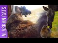 Cat and Moose: Stare Down | My cat's closest encounter with a moose yet! Who will win the staring contest, Ginger or this young bull moose? Watch their second meeting: